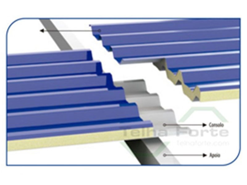 Observação importante: o encaixe lateral das telhas termoacústicas coladas já funciona como um sistema de remonte e faz parte do processo de fabricação, sendo indispensável para a instalação correta. Já o remonte no sentido do comprimento e a inclusão de pingadeiras são itens opcionais e devem ser especificados ainda na etapa de orçamento, garantindo que o produto seja entregue exatamente conforme o seu projeto exige.